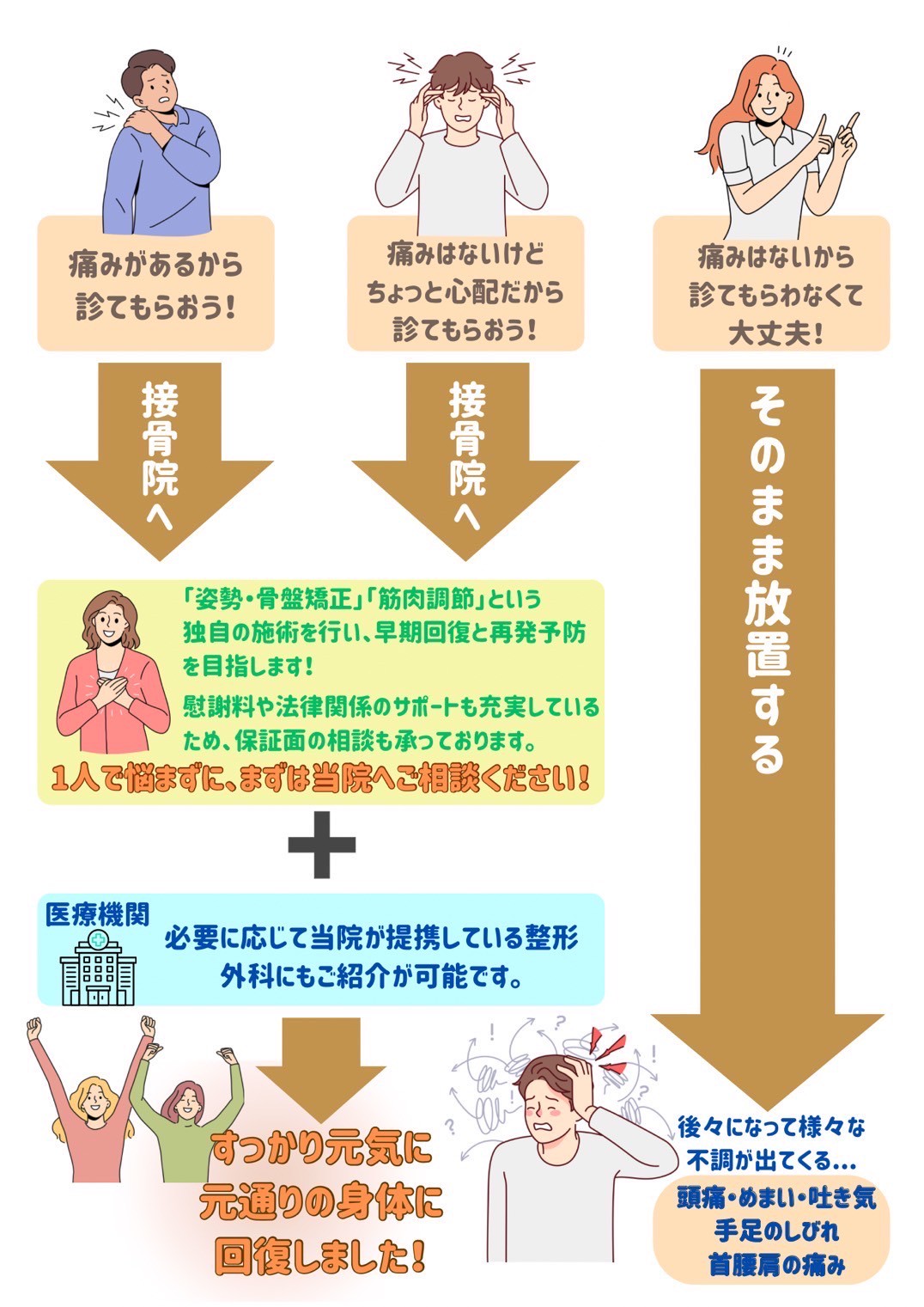 たいよう整骨院で「交通事故専門施術」を受けましょう!